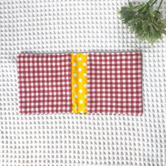 サニタリーケース*2ポケット* ネイビーレトロきのこ柄×赤ギンガムチェック