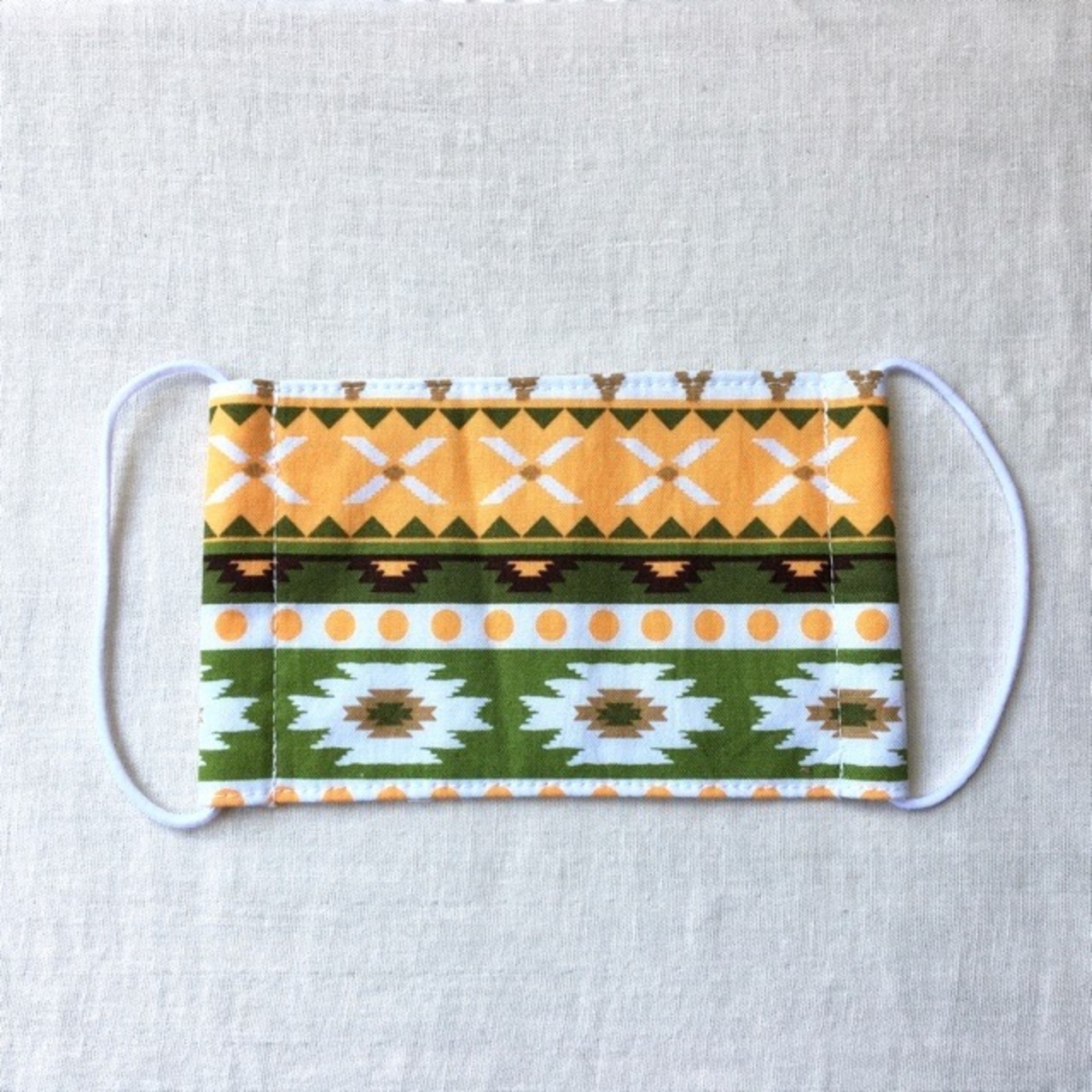 キッズマスク グリーン×オレンジ ネイティブアメリカン柄